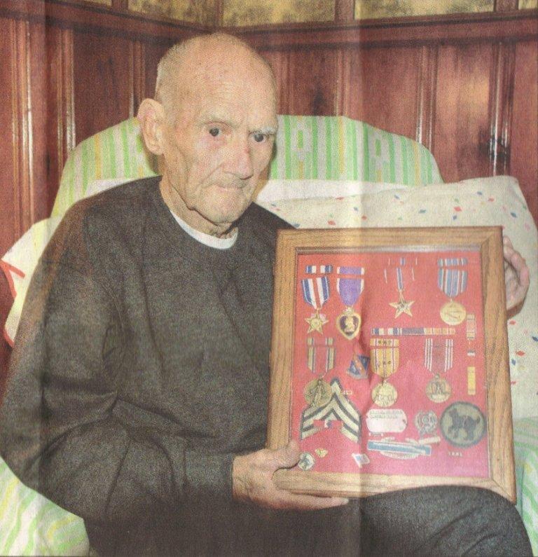 Sixty-three years ago, Delbert L. Fellers, of Greene County, was a reluctant warrior who had been drafted into the U.S. Army for service in World War II. "I sure didn't volunteer," said Fellers, who, at 85, is one of Greene County's few surviving Silver Star medal-winners from WWII. But like World War I hero Sgt. Alvin York before him, Fellers was able to perform an extraordinary feat when he saw his fellow soldiers being killed and wounded by machine gun fire in September 1944. A photo of his World War II unit still dominates the living room of his Curtis Street home. Fellers won the Silver Star for his heroic actions when his platoon came under fire from a Japanese machine gun on tiny Angaur Island in the Pacific Ocean's Palau chain on Sept. 28,1944. The citation for the Silver Star, one of the nation's highest military medals, notes that Fellers received the medal for "gallantry in action" against the Japanese on that day. U.S. Army regulations say "the Silver Star is awarded to a person who, while serving in any capacity with the U.S. Army, is cited for gallantry in action against an enemy of the United States while engaged in military operations involving conflict with an opposing foreign force, or while serving with friendly foreign forces engaged in armed conflict against an opposing armed force in which the United States is not a belligerent party. The required gallantry, while of a lesser degree than that required for the Distinguished Service Cross, must nevertheless have been performed with marked distinction." Six decades later, Fellers still gets emotional about the events for which he was awarded the medal "That was the day we got the machine gun," Fellers said, with his voice breaking, during an interview on Thursday. He recalled that his unit came under fire from a Japanese machine gun that was in place atop a hill and was firing down on his fellow soldiers. A newspaper article from 1944 notes that Fellers received the medal from Maj. Gen. Paul J Mueller, commander of the US Army's 81st "Wildcat" Division. |